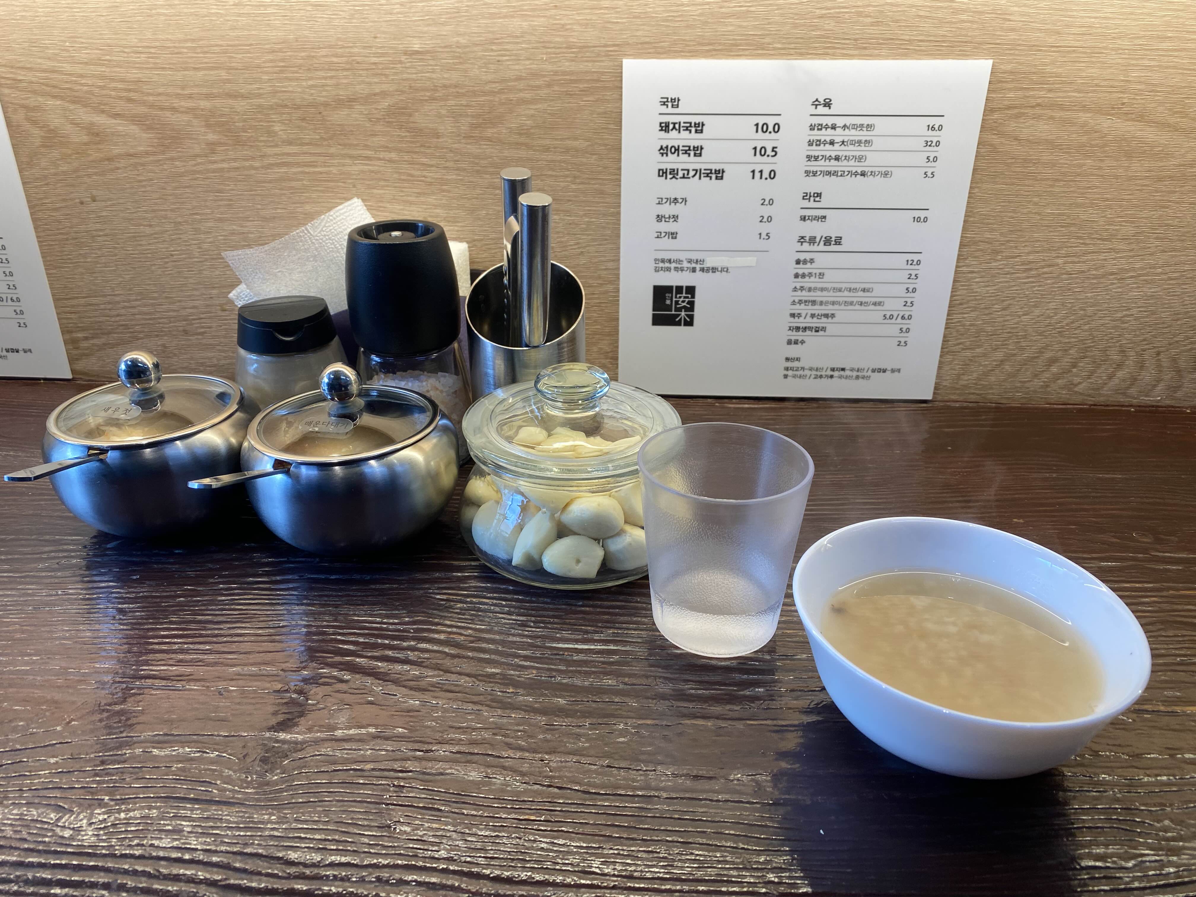 좌석에 앉으면 숭늉이 나와요.
