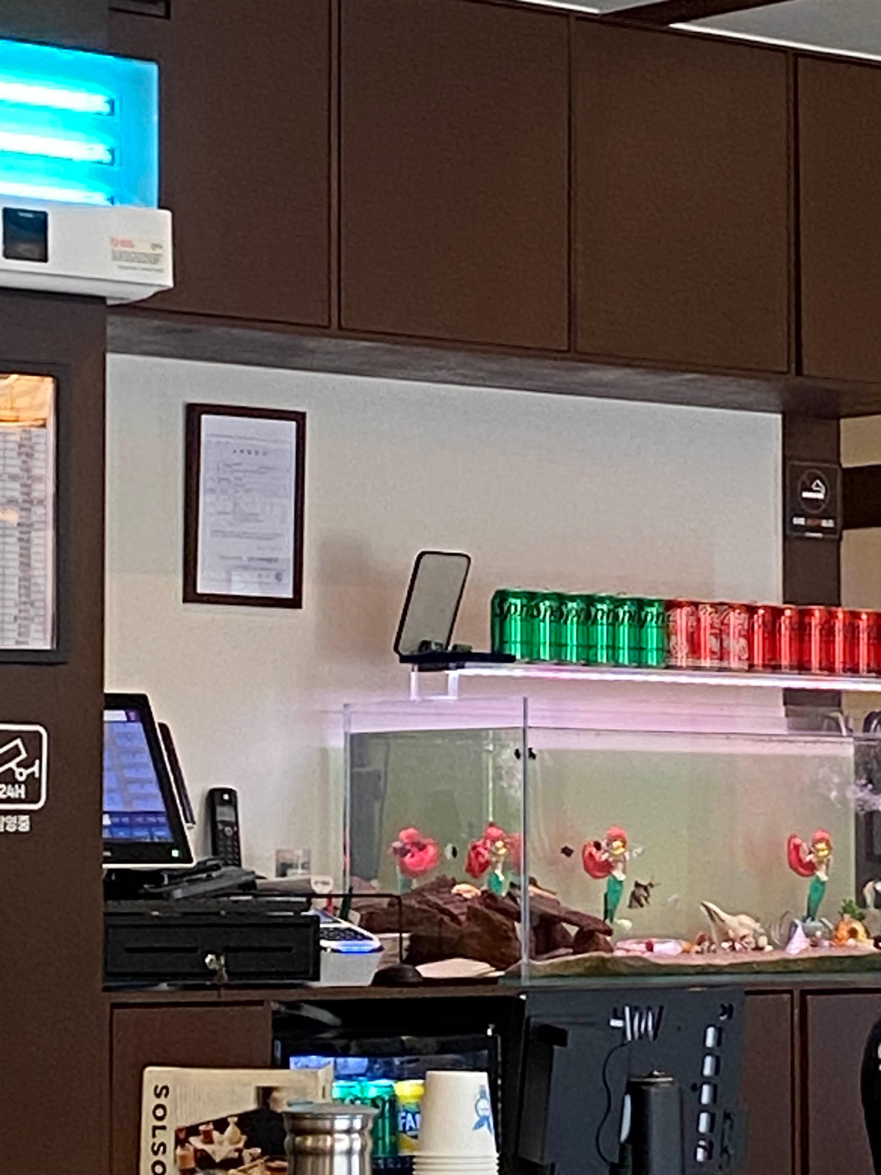외국인들 몇 테이블 앉아 먹고 있었어요.