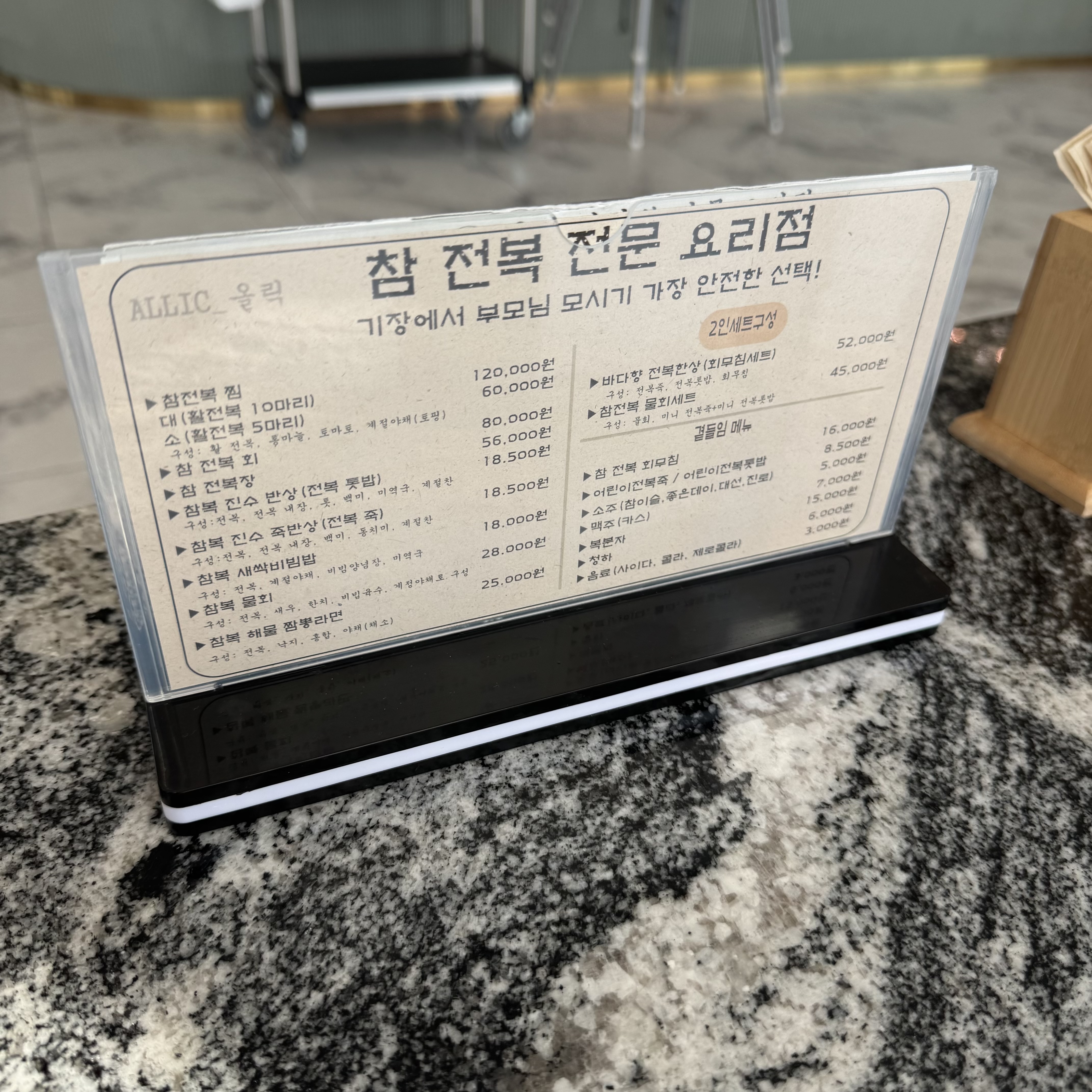 전복 진수 밥상은 100% 예약제예요!